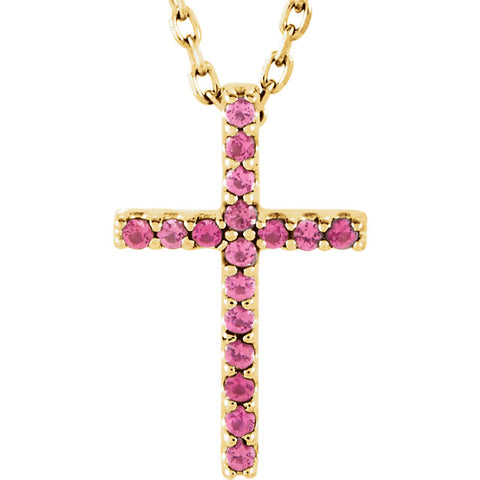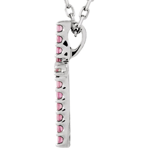 14 Karat White Gold Petite Pink Tourmaline Cross & Chain